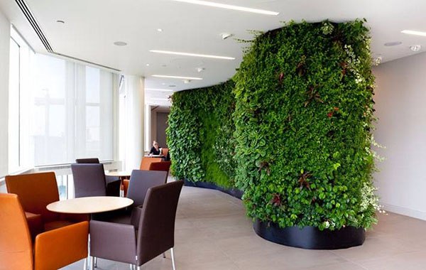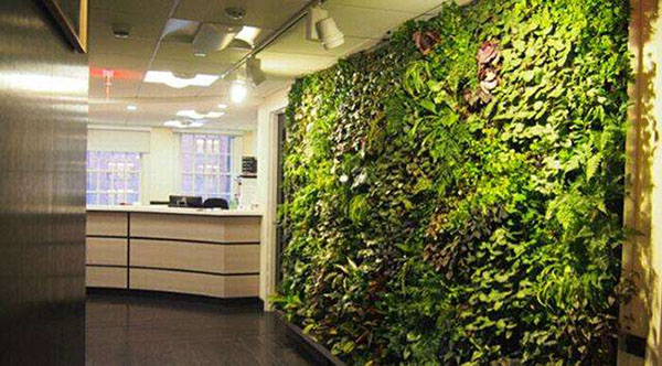 在办公室里面设置基面的植物墙,上面种一些评论的植物或者花草就能为缓解增添色彩。起到美化办公环境的作用。当然,办公室环境质量提高了,员工们工作的效率也会得到很大的提升,特别是现在电脑办公化的时代。大部分员工都会因为长时间面对电脑产生视觉疲劳。这时候办公室里面植物墙就起到了很好的调解员工视觉的作用。