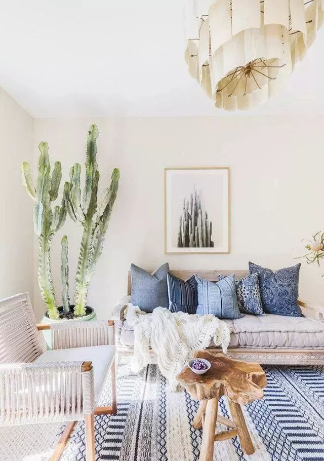 起居室的空间相对开阔,所以在使用花艺或绿植装饰时, 应注意多种形式的组合使用。