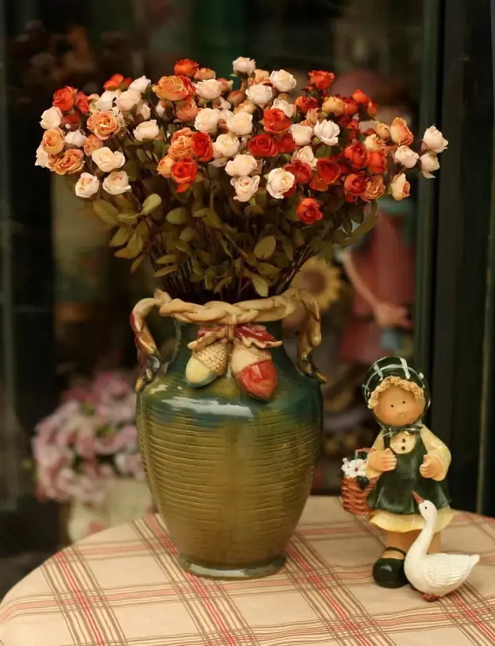 干花类是利用新鲜的植物,经过加工制作,做成可长期存放,有独特风格的花艺装饰,干花一般保留了新鲜植物的香气,同时保持了植物原有的色泽和形态。与鲜花相比,能长期保存,但是缺少生命力,色泽感较差。