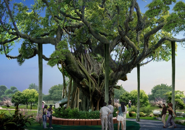 制做仿真榕树的材料有两种,一种是玻璃钢树脂,一种是水泥,一般大型的仿真榕树都是用水泥雕塑制作的,因为水泥现场雕塑可以制作出任意形状的仿真树,而且水泥制作的仿真树美观程度比玻璃钢要好的多。