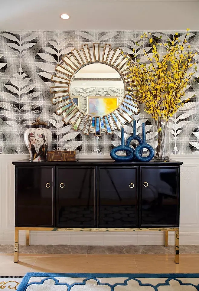 花艺在不同的空间内会表现出不同的效果,例如在玄关处选择悬挂式的花艺作品挂在墙上,就能让人眼前一亮,但应当尽量选择简洁淡雅的插画作品;