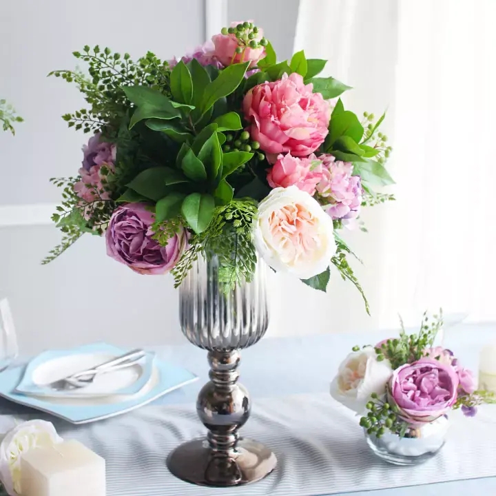 在卫浴间摆放花艺,能够给人舒适的感受,但因为此处接触水比较多,所以可以选择玻璃瓶等容器。