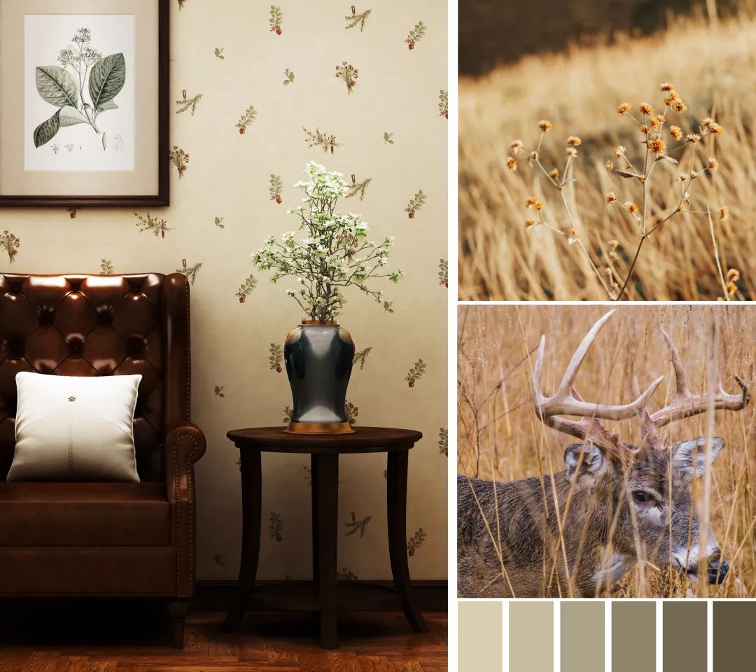 比如在整体空间架构中,选择田园风格的小碎花墙布,又在墙面上挂上绿叶装饰画,台几处放置一盆绽放正盛的小碎花。花艺与墙饰形成了呼应与互动,空间意蕴浑然一体,精致又灵动。
