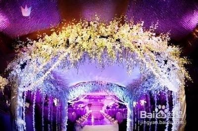 婚礼现场入口处:要让人未进入婚礼场地,便能感受到婚礼的气氛,便要在入口处下些功夫,圆形拱门,已是不可缺少,不宽不窄的通道,加上四周满满的鲜花,给人一种很热闹的感觉。金色做主色的半月型拱门,鲜花则用以点缀,简约得来非高贵。婚宴场地提供的入口处已经极具特色,但以鲜花和气球装饰一下,才能突出婚礼的气氛。摆一、二张你们最得意的婚纱照,放大摆在婚宴礼堂的入口处,除了让人羡慕你俩是“郎才女貌”天生一对外,重要的是告诉来宾不要走错地方,当然红包更不能送错地方。